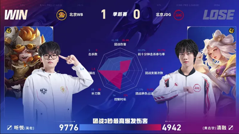 虎扑04月01日讯 WB/JDG第一局数据图:暖阳元坦能抗能打