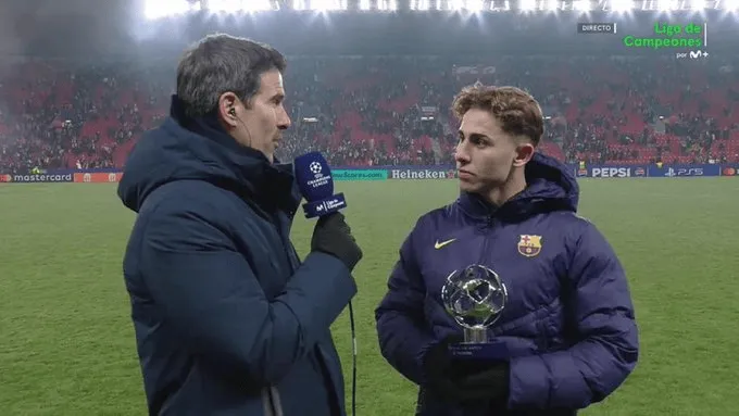 虎扑01月21日讯 欧冠联赛阶段第7轮,巴萨客场4-2战胜布拉格斯拉维亚。费尔明半场上演梅开二度并当选全场最佳,他在赛后接受采访。